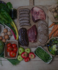 Primitive breed meat: You'll enjoy a rotating supply of heritage meats, sourced from animals raised slowly and respectfully on our farm. You’ll receive cuts from our Riggit Galloway beef, a richly marbled native breed raised on diverse herbal pasture with full-bodied flavour. Our woodland-raised native pigs roam freely, producing resilient pork with real taste—lovingly butchered into sausages, chops, and roasts. From the wildflower meadows come our Hebridean lambs, Britain’s oldest native sheep, whose natural grazing restores the land and yields dark, complex meat. And our slow-grown heritage chickens live as nature intended—dust bathing, foraging, and growing at their own pace—offering nourishing, full-flavoured meat delivered whole to honour the bird.