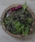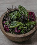 Our salad mix is a currently a blend of tender and tangy leaves like lettuce, chicory leaves, fennel fronds, rocket and sorrel, with a dashing of vibrant colours from added flower petals.